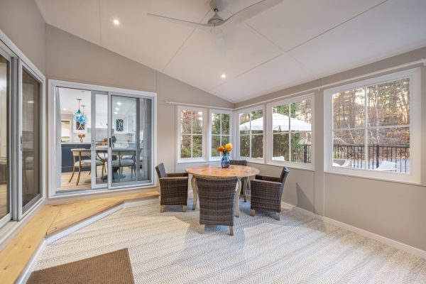 Vaulted ceilings in family and sunroom to enhance openness