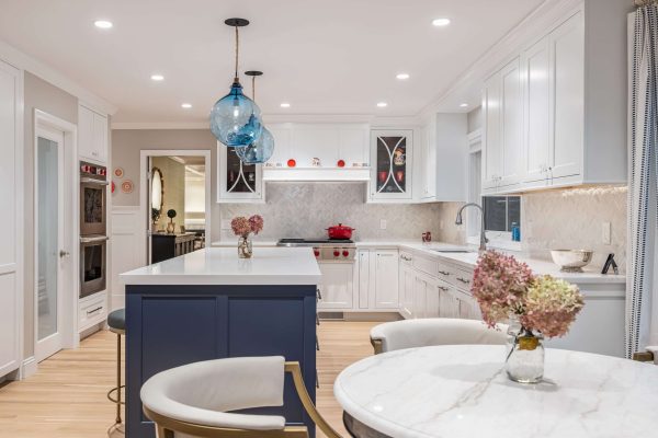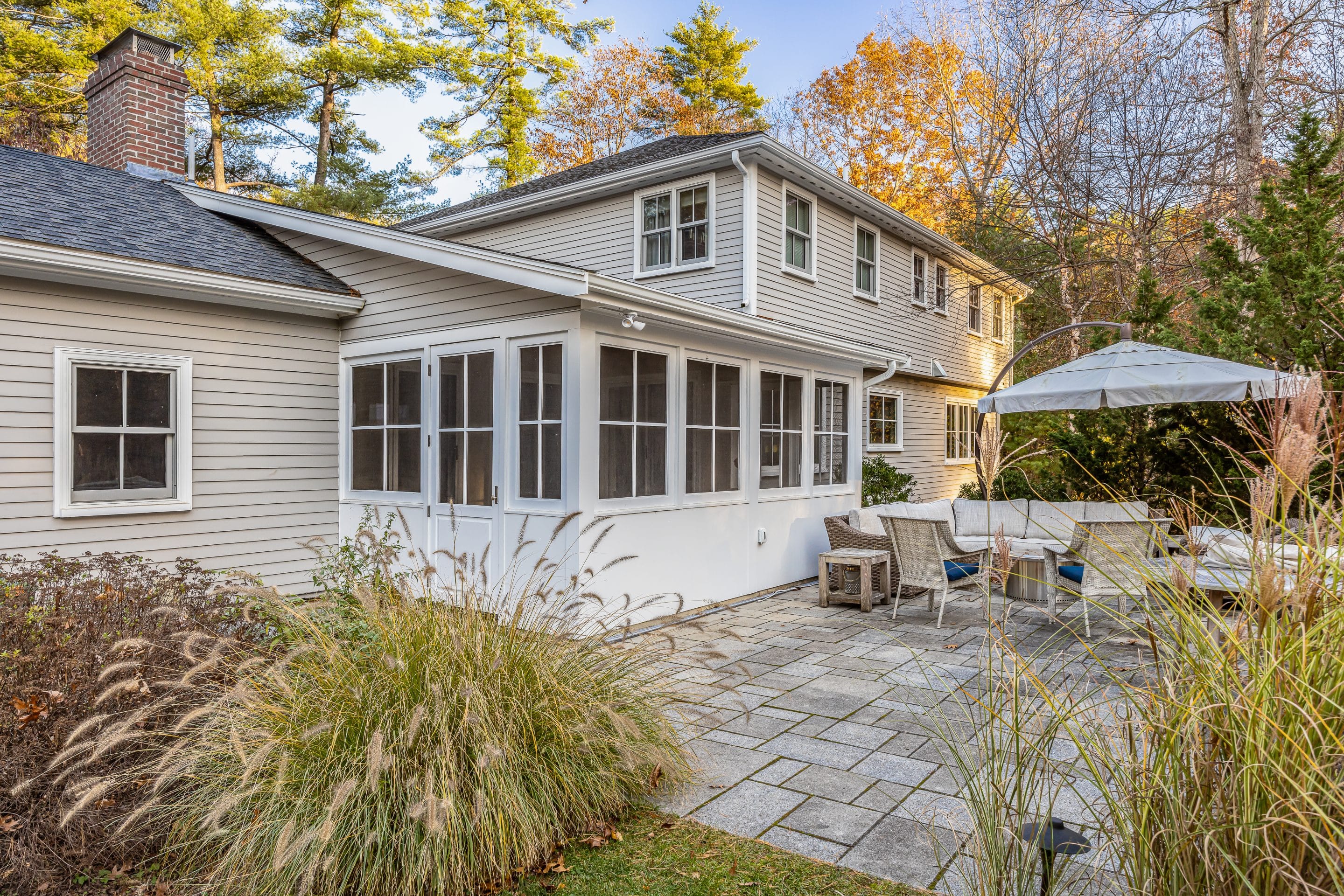 This classic-style home underwent a comprehensive transformation focused on architectural elegance and functional refinement. The living room now features coffered ceilings, adding depth and formality, while the family room and sunroom boast newly angled ceilings, enhancing vertical space and light.