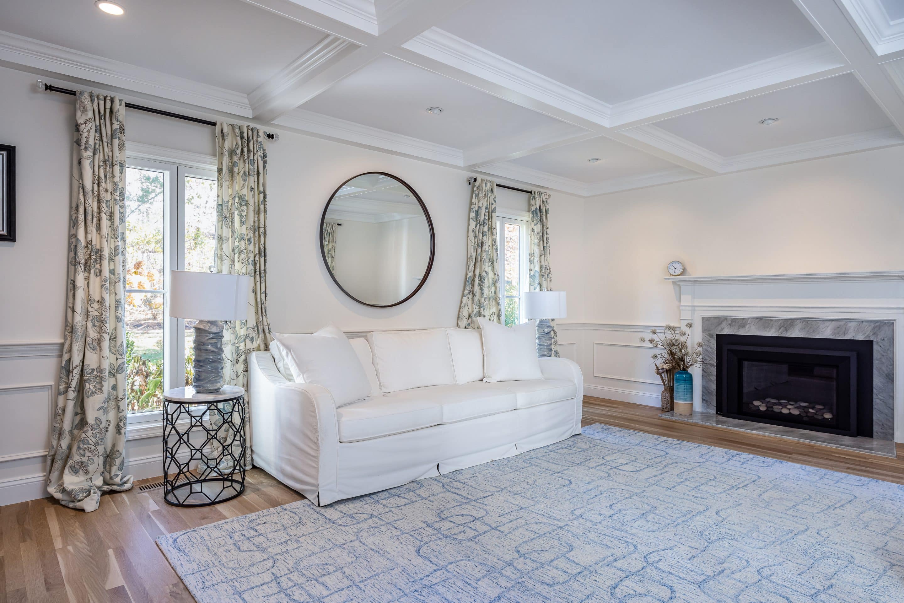 Coffered living room ceiling for added architectural interest