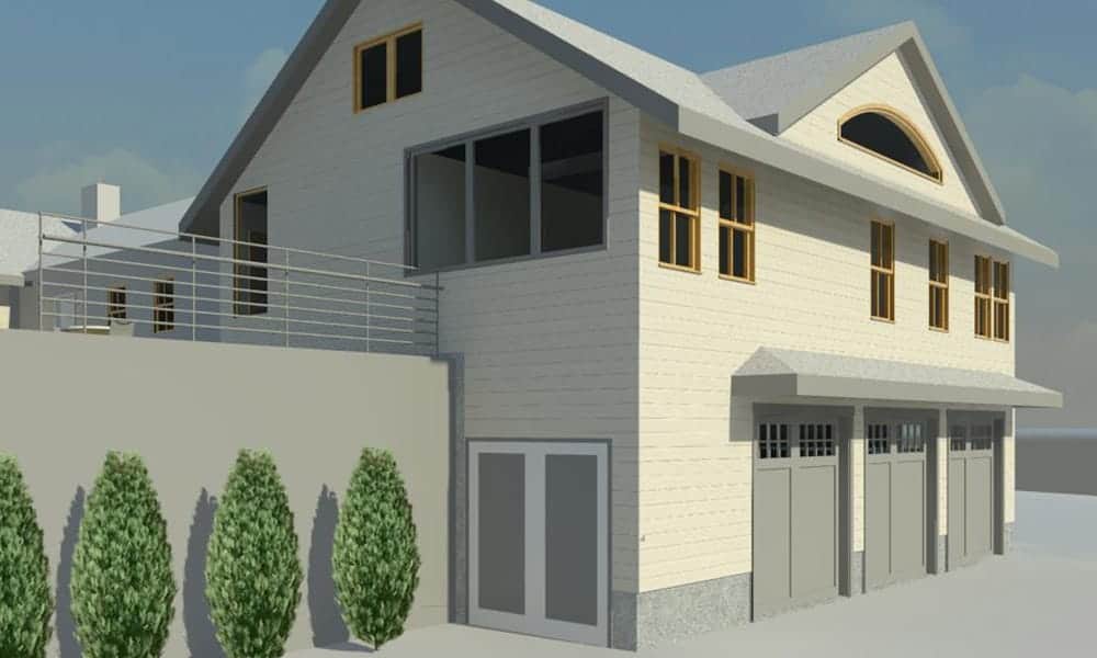 - Increasing the footprint for a new 2-story addition with a 3-car garage on level 1