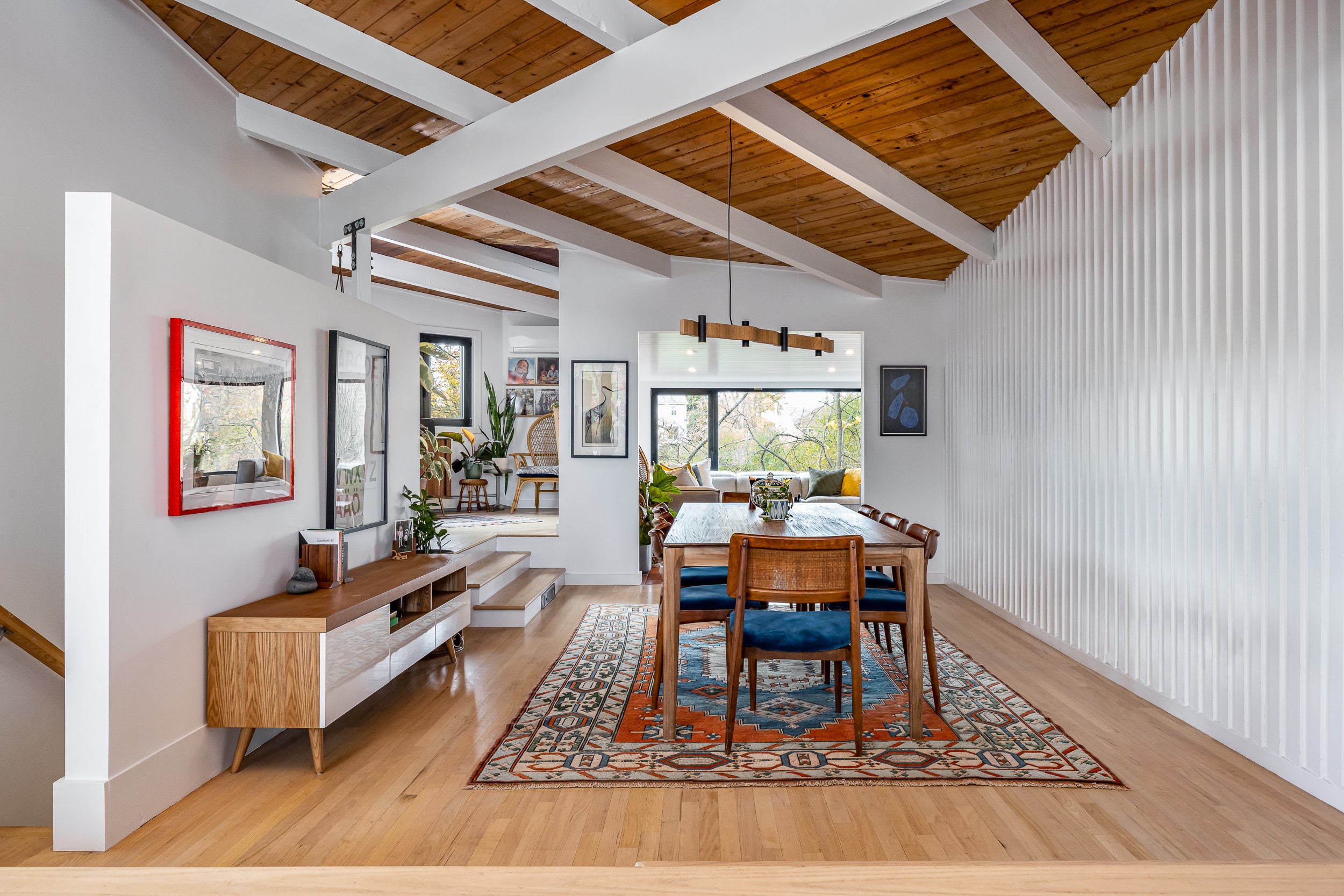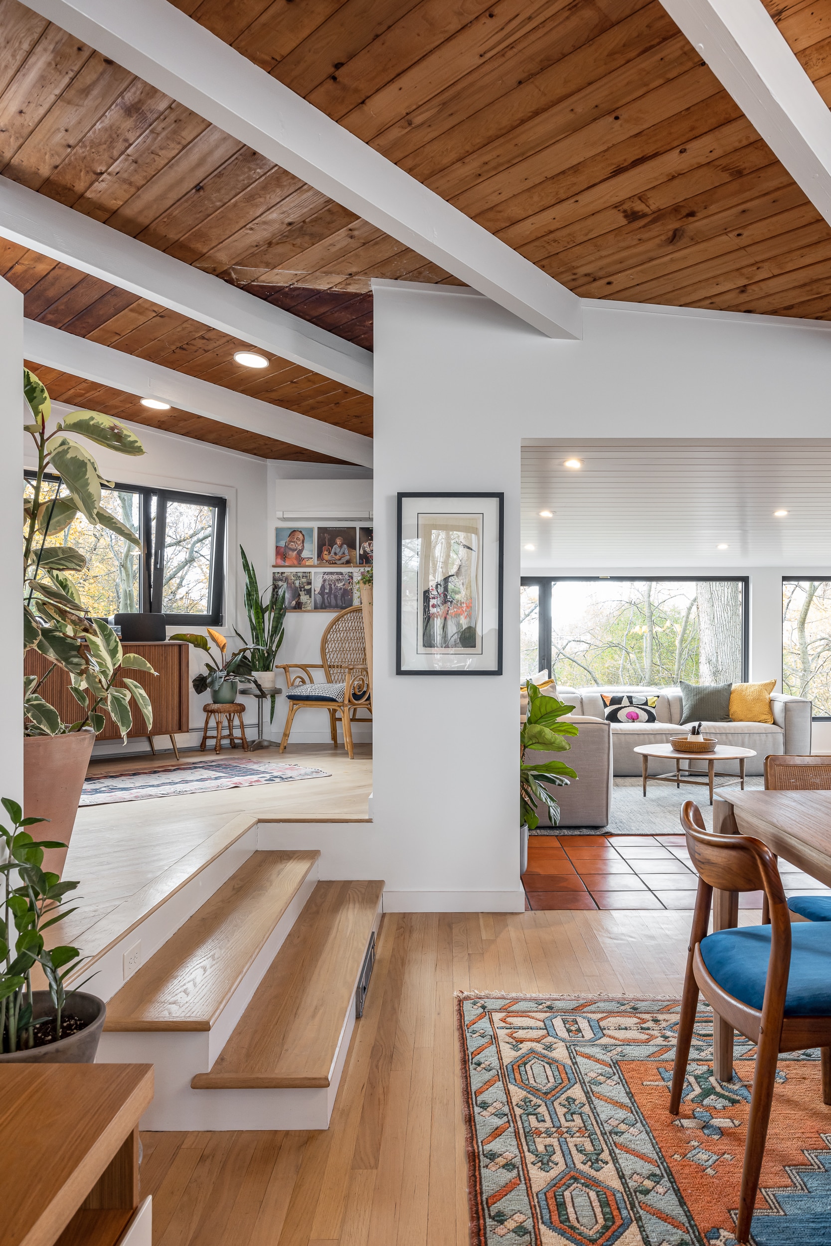 Our client’s goal is to successfully achieve a fresh and modern look for their home, using only the best quality and long-lasting materials. Resulting in a stunning mid-century modern aesthetic that can be enjoyed both indoors and outdoors. They enjoy spending time outdoors and want to experience the beauty of their backyard even when they are forced to stay inside. To attain their vision of an indoor/outdoor living space, we are installing large-picture windows so they can have unobstructed views of their backyard throughout the living room and kitchen.