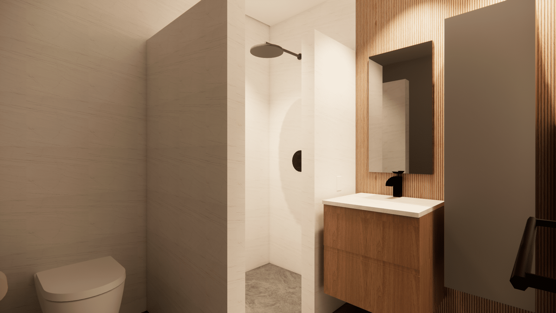 Tunnel with bathroom and unfinished storage