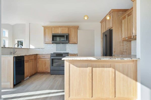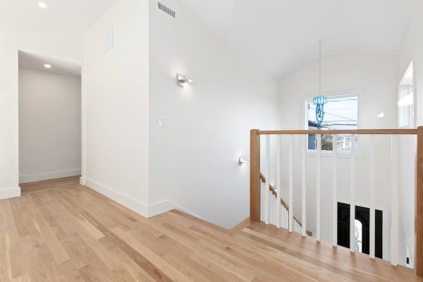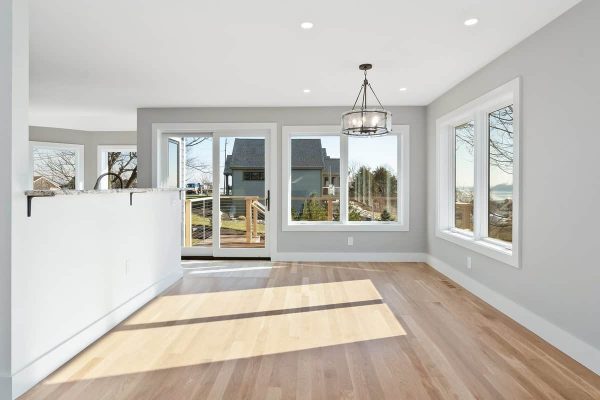 This brand new 2,400 square foot house is equipped with 3 Bedrooms, 2.5 bathrooms, an office, a personal library, kitchen, dining room, living room, a 2 car garage, 2 decks and all the storage that the client had asked for. The first floor open concept design contains the kitchen, dining room, sun room, living room, library, powder room, master bedroom with ensuite and walk-in closet. The second floor has a walkway looking towards the living room below it, 2 bedrooms, an office and another centrally located bathroom along with the clients much needed storage. This house maximizes the natural light that the property is exposed to with over 30 windows and 2 skylights, this design was to generate the views that the property has to offer as well as eliminating the need to switch on the lights during the day. The Pionarch team worked carefully with the clients’ needs to make sure that everything they wanted in their dream home would fit into the budget that was presented.
